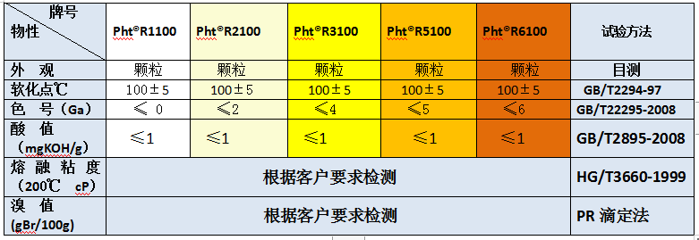 Pht?-R1100、Pht?-2100、Pht?-3100、Pht?-5100、、Pht?-6100精C5系列石油樹脂適用于熱熔型路標漆的改性石油樹脂。它能增強涂料的韌性、硬度及附著力,并形成平滑的漆面,而且通過添加助劑,使樹脂在四季中始終處在一種穩(wěn)定的狀態(tài),并和松香類樹脂、萜烯類樹脂、碳九石油樹脂混溶性佳。在高檔油漆復配中,可使油漆漆膜形成耐水、耐酸耐堿、耐紫外線、耐化學品的特性,并使外觀光亮度及干燥性都有明顯改善,其中Pht?-R1100Pht?-R2100經(jīng)過氫化或半氫化的碳五石油樹脂,外觀顏色水白色,200度3個小時熱穩(wěn)定性不變色。是生產(chǎn)更高檔品質(zhì)的熱熔路標涂料的助劑,性能更佳。